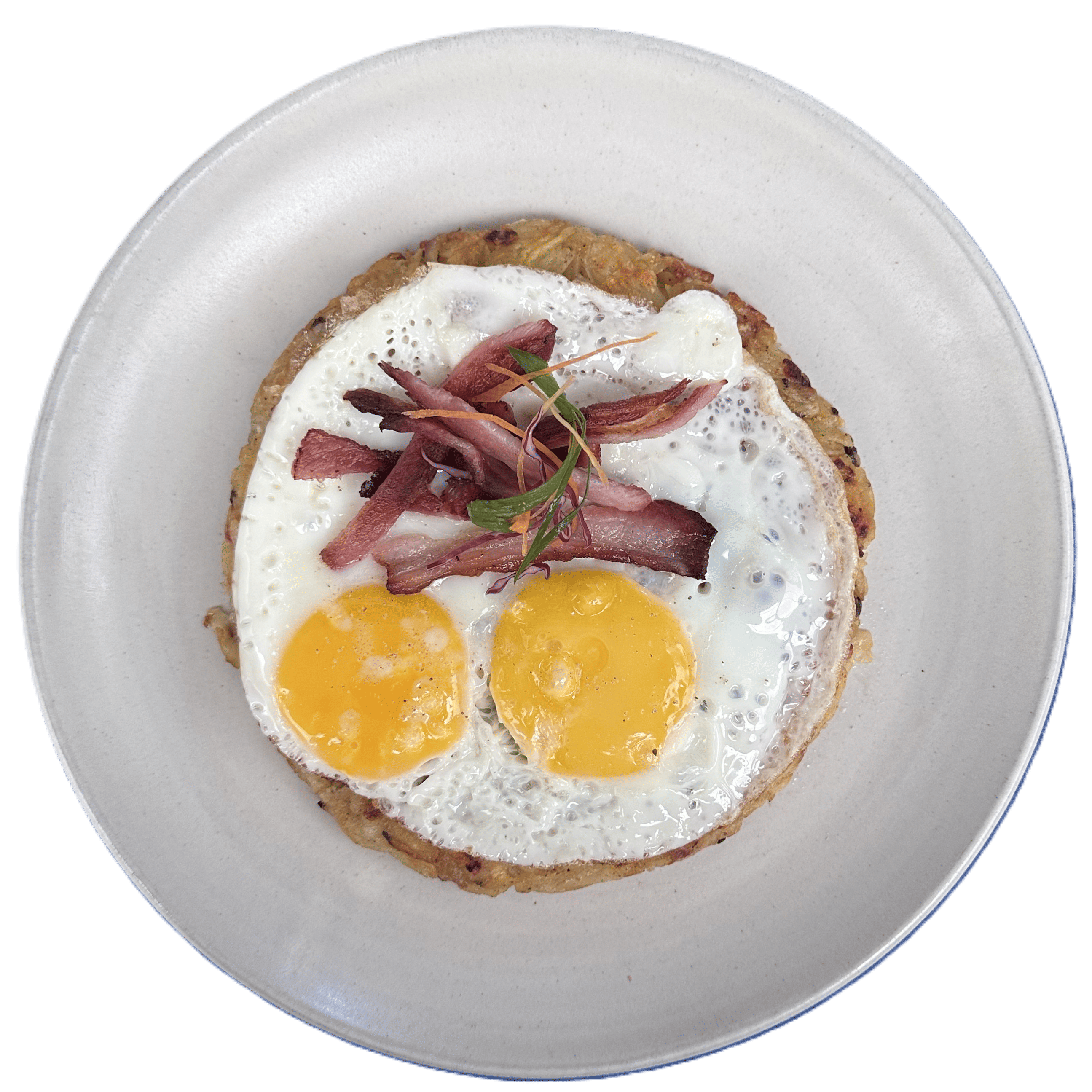 Indulge in our Non-Veg Roastie Salad, featuring crispy cheesy hashbrowns topped with perfectly cooked sunnyside-up eggs. Choose from bacon or chicken for a hearty twist, paired with fresh, vibrant vegetables for balance. This flavorful, satisfying salad combines protein, crunch, and freshness, making it a perfect choice for a nourishing breakfast or brunch that keeps you energized.